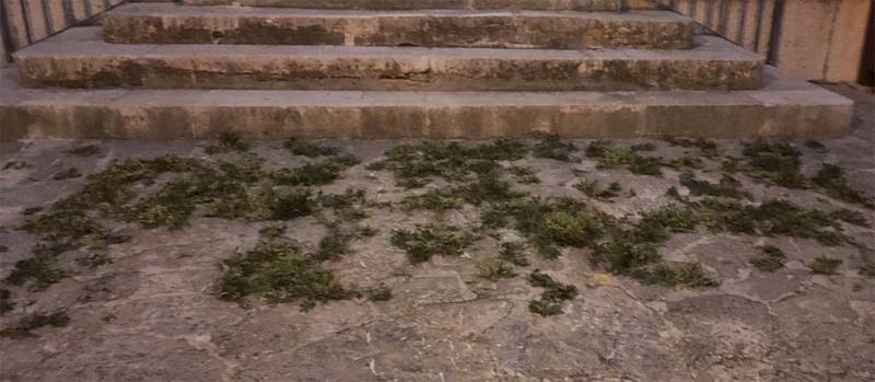 A les escales d’entrada també se van escampat brots d’alfabaguera.