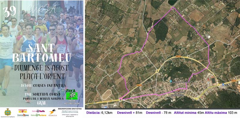 Pel que fa a la 39a cursa de Sant Bartomeu, va tenir una ampla participació i recuperà el tradicional itinerari que surt de l’Orient per baixar pel carrer Col·legi, carrer de la Mar, Pi de s’Horta, Son Jaumell, camí des Murtar, rodona de sa Llata, carrer Roses, costa de Can Capet i carrer Centre per tornar a la plaça de l’Orient.ç
