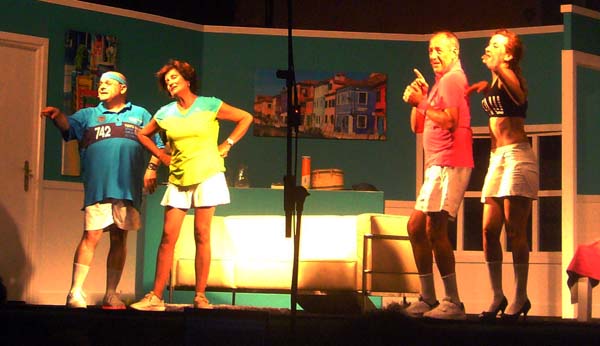 En realitat, es tracta de tres peces amb el denominador comú de l’habitació de l’hotel on transcorre l’acció. No hi arguments, sinó tres situacions més o manco divertides, amb finals absolutament previsibles. I, això no obstant, passàrem una hora i mitja molt entretenguda, gràcies principalment al treball dels quatre actors, que hi posaren gràcia i professionalitat. Ja fa gairebé dos anys que el Grup Trui passeja aquesta obra, i bé es veu que els seus intèrprets la dominen perfectament i saben com esprémer un text que, en altres mans, segurament no ens resultaria tan bon d’empassar. Així que un notable per a tots quatre.