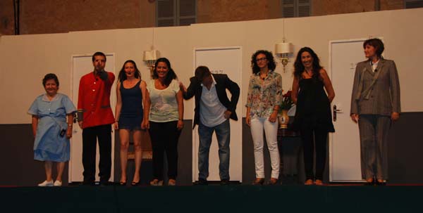 I per acabar la jornada festiva van poder gaudir de la comèdia escrita i dirigida per Arnau Serra “the brifcase (el maletí) i interpretada pels alumnes del taller de teatre d’adults de Son Servera. Una acció que transcorre en un passadís d’un hotel amb situacions còmiques i els típics embolics de les comèdies d’humor, amb personatges molt ben definits. L’obra i l’interpretació va agradar molt al nombrós públic que omplia la plaça des Sitjar i que passà una estona molt divertida.