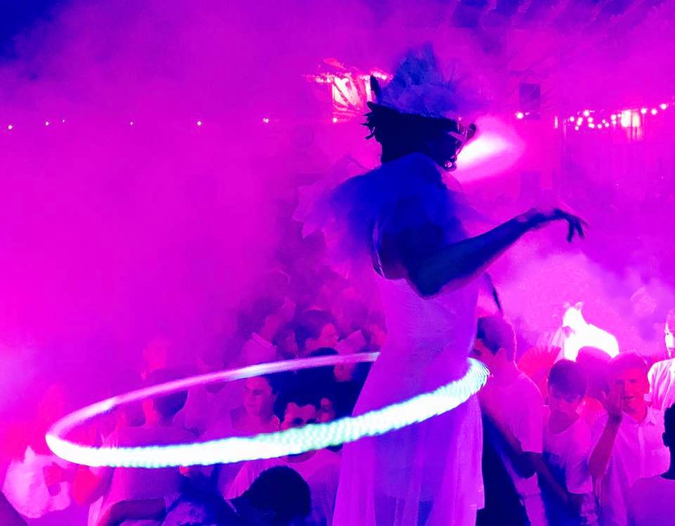 I just acabar el teatre la gent ja enfilava cap a la plaça des Sitjar on la festa blanca amb Dj i tot el seu protocol es disposaven a viure una nit memorable. Plaça plena efectes neons, bona música i sobretot ganes de festa.