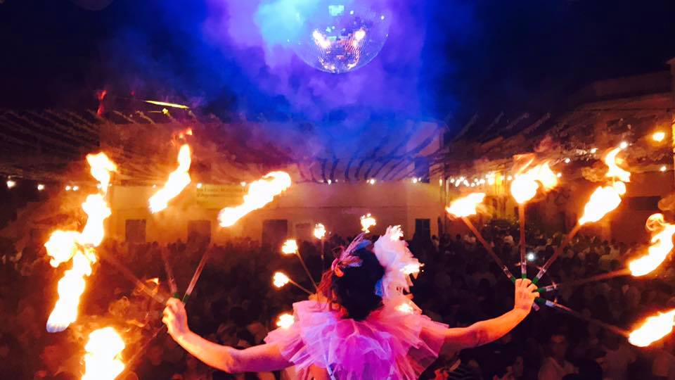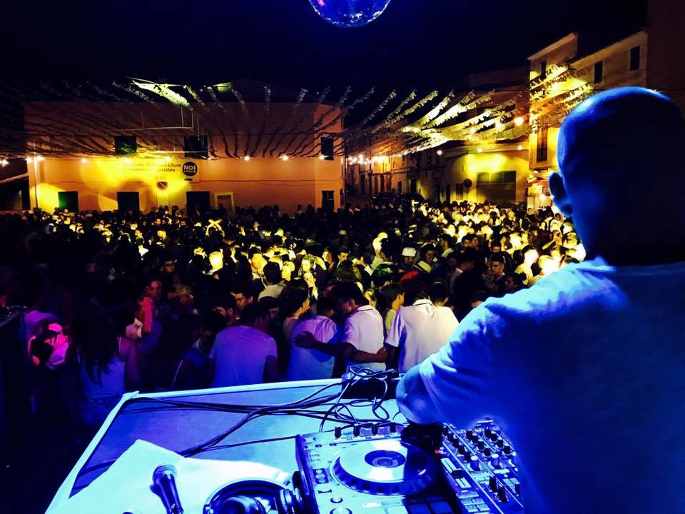 Primerament, la plaça s’omplí, a poc a poc, dels primers festers que formaren una rotllana, que deixava un buit enmig de la plaça, que de mica en mica s’anà omplint per part dels més joves i no tan joves. La música (una mica massa forta, tot s’ha de dir) semblava convidar al ball, amb ritmes que anaven del reaggeton a la bachata. El model festiu era una espècie d’exportació a l’aire lliure de les discoteques que hi ha a Cala Rajada. La màgia de la festa ja començava a l’entrada, amb unes teles blanques com a símbol de benvinguda (se sap que el blanc és símbol de puresa). També hi havia un espai per a fotografiar-se. La gent es congregava al bar Sitjar i al tasser que hi havia muntat per a la ocasió. Sonaren peces tan de moda com el “Despacito”, que ja arriba a ser un hit massa mastegat amb tot tipus de versions (se veu que el tema triomfa) o “La batidora”, entre d’altres, que el discjoquei va saber lligar amb l’electrònica pertinent. D’altra banda, i com a novetat, dues ballarines pujaren a l’escenari per a realitzar espectacles de ball i foc, amb malabars i torxes, que donaren una ambientació destacable, així com la il·luminació que comptava amb un sofisticat aparell tecnològic que va fer de la plaça des Sitjar una espectacle de llum i de color.