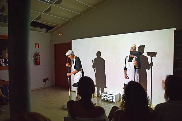 El segon escenari va ser per a l’obra JOC NET, ja dins l’Escola de Música, on s’hi estrenà l’obra de Miquel de Marchi, brillantment representada per Aina Jagla i Aina García-Paredes. Ambdúes interpreten dues netejadores d’un cinema; la capça dels objectes perduts els hi servirà per crear un món imaginari que treu a l’espectador del seu tedi. Amb una tècnica magistral, combinen la mímica amb la manipulació d’objectes i el cinema mut, l’obra era una petita joia en blanc i negre feta delicadament i amb bon gust dintre de les quatre propostes.