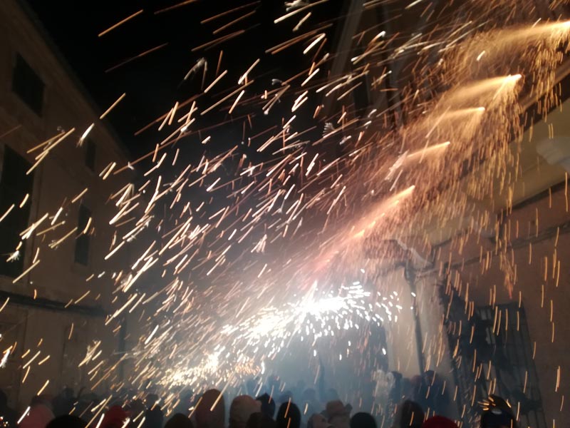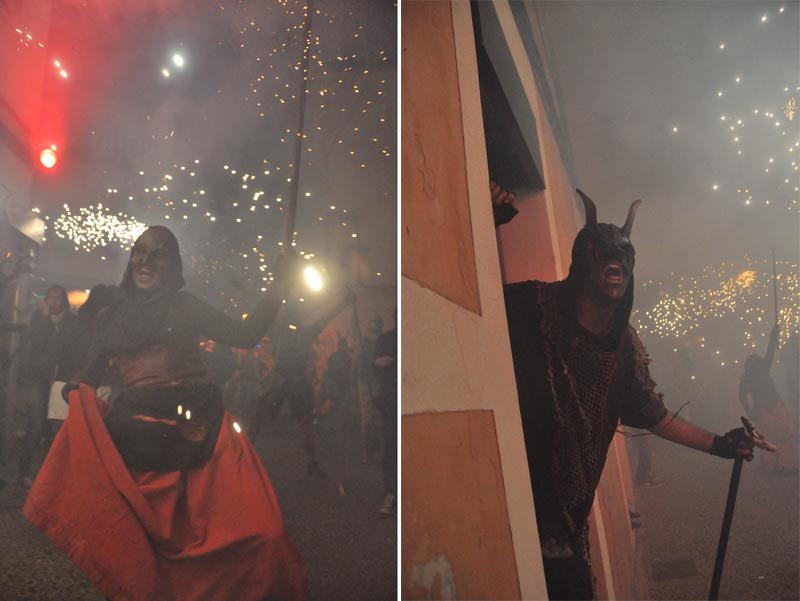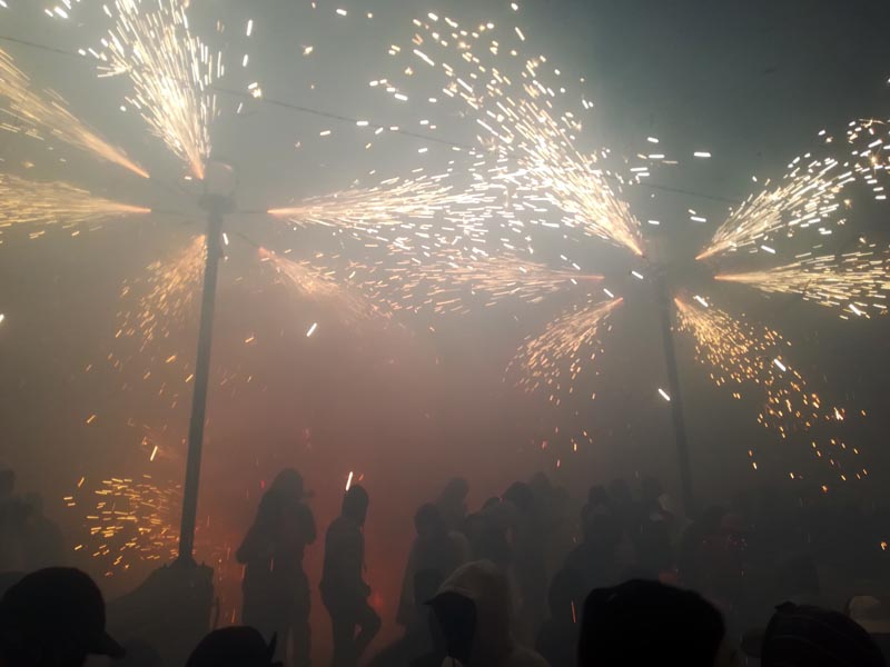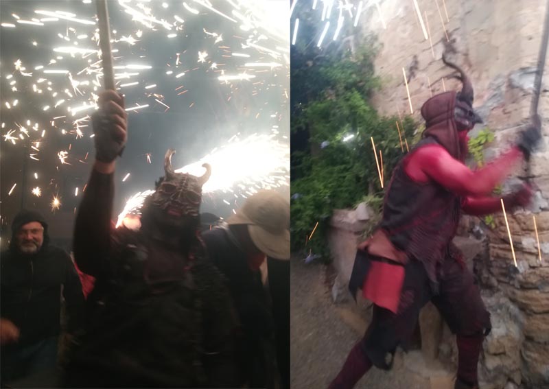 Des de l’inici a la plaça de davant l’església, fins el final al pàrquing de l’escola va ser un constant amb vàries cascades de foc. Especialment espectacular va ser el pas pel carrer Fondo i l’arribada al pàrquing, a dalt de la costa de Can Capet. Però vaja, en conjunt tot el recorregut va ser un contant de dimonis amb espires i artefactes per llançar foc.