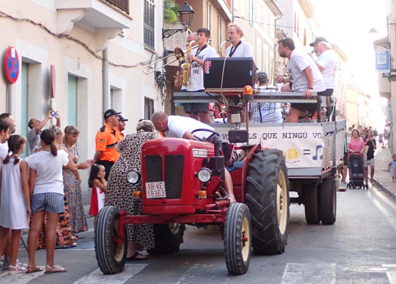 L’arribada d’”Els qui ningú vol” va marcar l’inici del pregó en el que, en Xisco “Niu”, va fer referències a la pandèmia de la COVID, als companys del Centre de Salut i als seus records d’infant de les festes de Sant Bartomeu. En una publicació a part us oferirem el pregó complet.