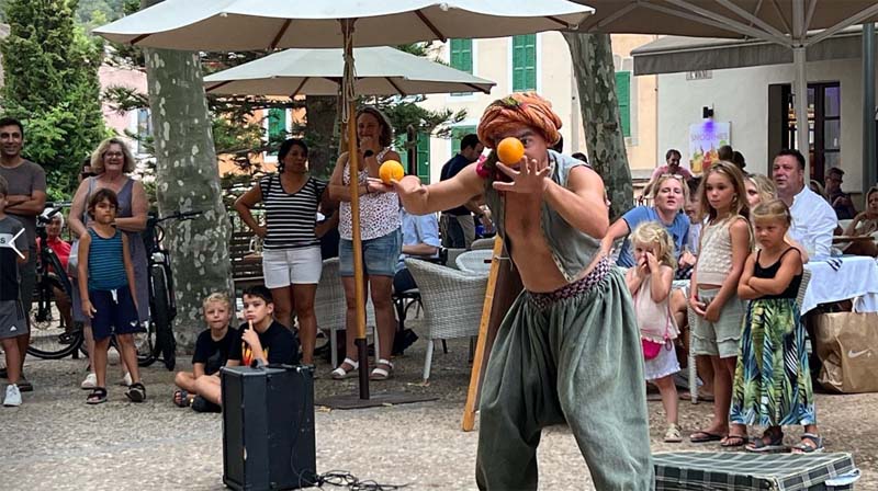 Les festes de Sant Bartomeu començaren amb el pregó de Xiscu Sancho a la plaça de l’Orient. El pregó va estar precedit de l’actuació del “Pirata Jassafan” qui va oferir un espectacle de circ al carrer amb malabars.