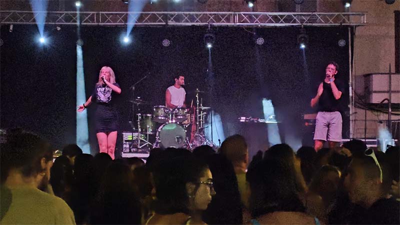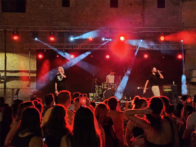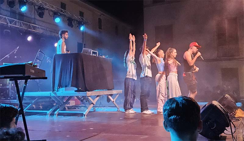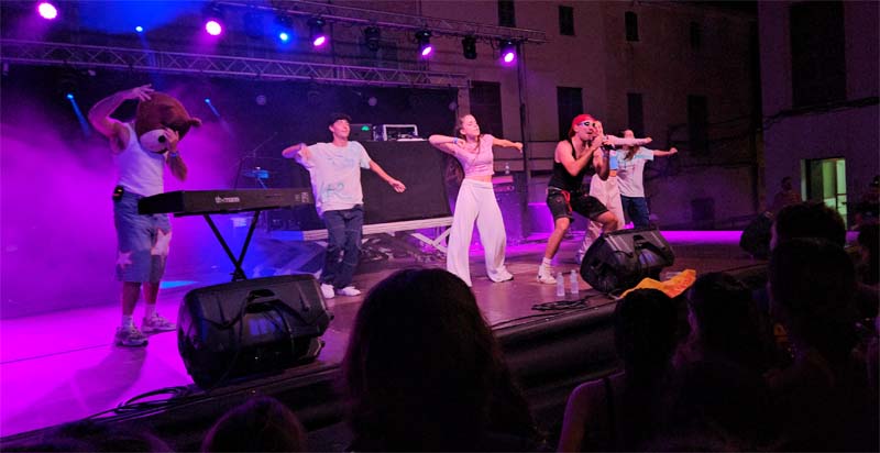 El grup Lal’Ba va començar la seva actuació amb la plaça plena d’un públic decidit a gaudir de la seva música. Les seves cançons, amb un cert toc melòdic, són molt agradoses a l’orella. No cal dir que molts de joves corejaven les seves cançons i d’altres se deixaven dur pels ritmes que convidaven al ball i passar-s’ho bé.