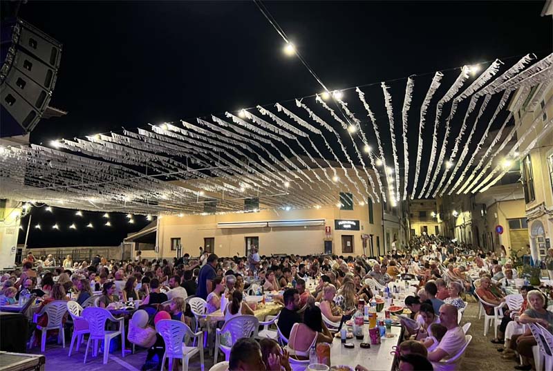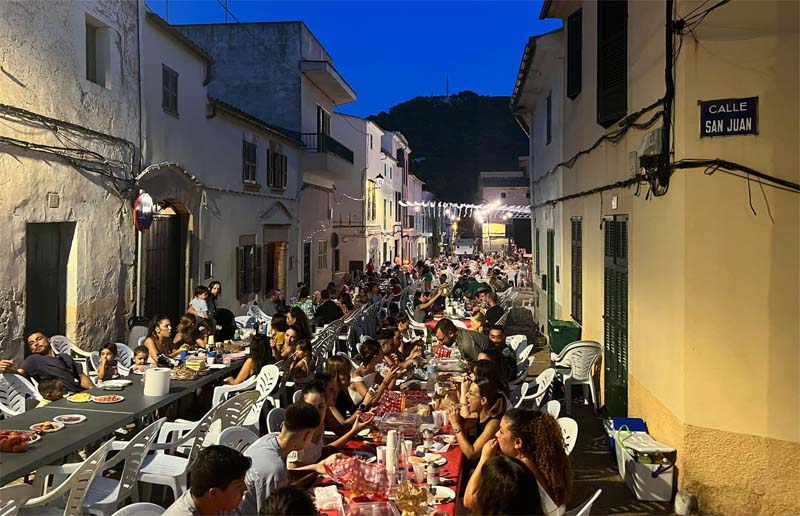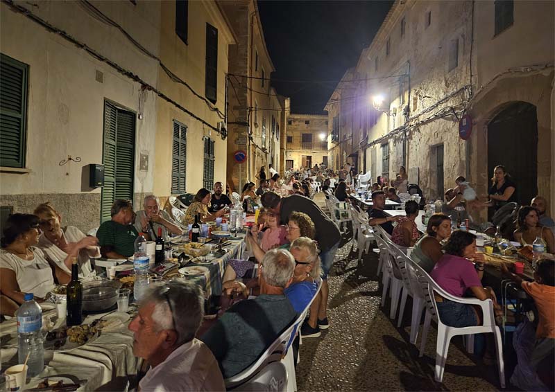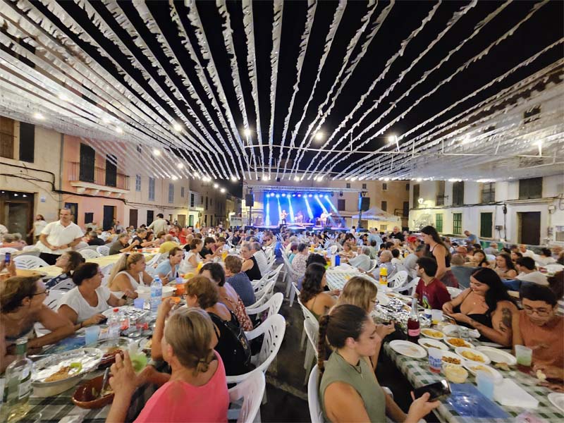 Estam contents que aquest sopar comunitari (pensem que el de Capdepera va ser dels primers i s’anà estenent a gairebé totes les festes de poble) hagi reviscolat com a punt de trobada d’amics i veïns. Cada grup munta el sopar al seu estil, degustant tot entre tots i compartint plats amb els del costat. Des del senzill pa amb oli, fins a plats de la cuina mallorquina d’estiu (coques, tumbet, sopes…) elaborats, passant per les truites, carn arrebossada, croquetes, amanides…. una gran varietat. Inclús, com anècdota, un grup se presentà amb el carret de la compra ple a vessar (era un grup gran) i allà mateix improvisaren el sopar.