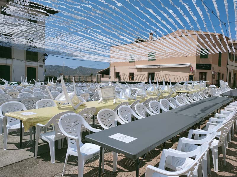 Enguany la participació al Sopar a la Fresca se pot dir que ha augmentat respecte als darrers anys. Recordeu que a les edicions posteriors a la pandèmica de la COVID la participació havia minvat considerablement. En el 2023 se pot dir que la proposta s’ha recuperat, al manco pel que fa al nombre de participants. També l’organització del Sopar a la fresca ha tingut unes breus variacions. Per començar calia reservar taula (donant el nom i indicant el nombre de comensals) i els organitzadors assignaven taula. A cada taula se trobà un full indicant el nom i ls places de la reserva.