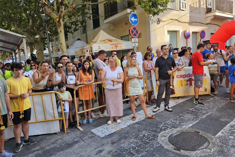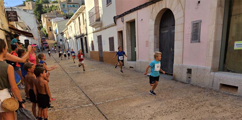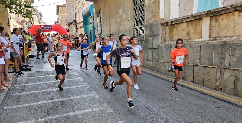 Poc després de les 19 hores sortí la cursa popular i la marxa nòrdica que feien el mateix recorregut. Enguany s’ha tornat al recorregut tradicional que surt de l’Orient pel carrer Col·legi, carrer de la Mar, el Pi de s’Horta, Son Jaumell, camí de na Gambusina, rodona de la Llata i tornada a la plaça de l’Orient pel carrer Ciutat. En total devers 6 quilòmetres. L’itinerari és “fàcil” sense massa desnivells (malgrat la costa d’En Capet) i la major dificultat va ser la calor, i veritablement feia calor (al cap i a la fi som en ple mes d’agost). Molt encertat posar un avituallament d’aigua al quilòmetre 3, a Son Jaumell.