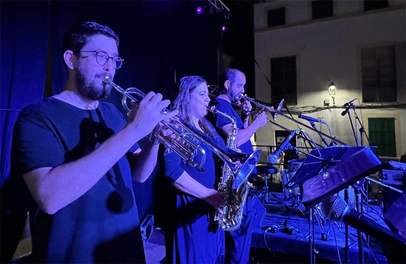 L’Orquestra Aquarius va arrancar la festa amb peces molt ballables que els ballarins de la tercera edat van aprofitar per a realitzar les seves coreografies de ball en línia. En l’orquestra tocà el saxo na Marina Flaquer.