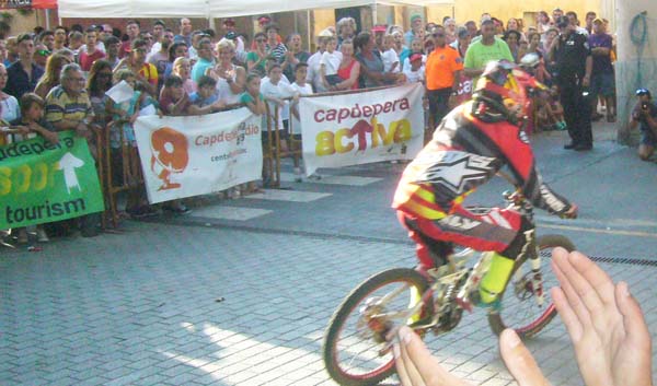 Per començar el programa, va tenir lloc el sempre espectacular descens en bicicleta, el dit DOWN TOWN CAPDEPERA per a BICICLETES BTT/DH. Velocitats frenètiques, salts impossible i girs vertiginosos, per a una carrera que té molt d’espectacle i que el nombrós públic va seguir sense perdre calada. Aquesta fou la classificació de la prova: