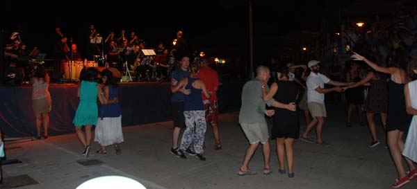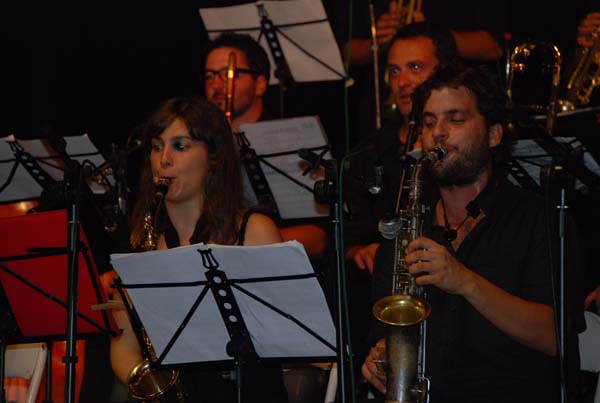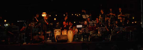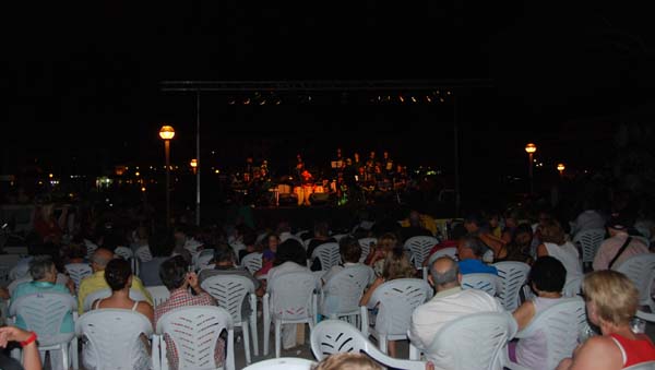 Després dels focs començà el concert de jazz en el moll. Enguany amb una oferta magnífica, de la qual ja hem donat comte en una noticia a part. Una vetllada amb bona música, amb un grup de músics d’una gran qualitat i una selecció de temes molt encertada, tot animat pels ballarins espontanis que amb les seves acrobàcies hi posaren un punt de color. Gran acutuació de la nova Mallorca Jazz Orquestra.