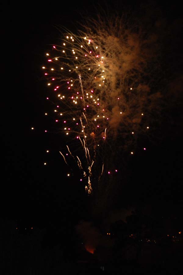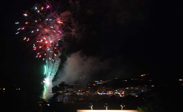 El concert va ser interromput pels focs d’artifici, per superposició dels actes. Per cert, si tornen a coincidir, només cal anunciar la vista dels focs des de la magnífica talaia que és sa Torre Cega. Els focs en si mateixos resultaren bons, molt bons. Ja duim un parell d’anys amb bons castells de focs, malgrat sempre facin gust de poc. És cert que sempre semblen curts, però tant pel ritme com per la seva espectacularitat (i el marc del port) cada any convoquen una gernació de gent, que gaudeix d’un espectacle molt especial.