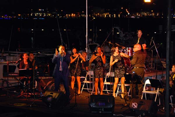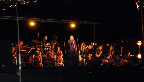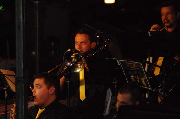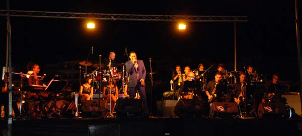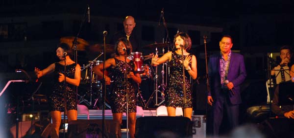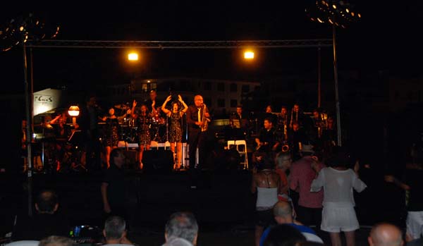 La formació liderada per Luís Depestre – un autèntic virtuós del saxo – , i en la qual hi fa un paper destacat el “nostre” Miquel Gayà, sona molt bé, com una maquinària ben greixada, al servei d’uns arranjaments fets a mida. Aquests arranjaments, a més, ens oferiren la possibilitat de visitar de bell nou la música de Ray Charles, reconèixer-la i, això no obstant, tenir la sensació que l’escoltàvem per primera vegada. Perquè, per si algú no ho sap, The Old And New Big Band el que va oferir fou tot un espectacle sota el títol de Ray Charles Tribute, tot passejant pel millor del repertori d’aquest músic. Temes com Hit The Road Jack, Halleluyah I Love Her So, I Got A Woman, Georgia On My Mind, Yesterday, Unchain My Heart o What’d I Say, tan coneguts i apreciats, varen aconseguir que el públic vibràs de bon de veres. En els concerts de jazz en el moll, moltes vegades costa retenir l’audiència, però aquest no fou el cas, ja que el públic, sobradament entregat, va romandre en els seus seients fins a la darrera nota, i més que n ‘hauria volgut. En el paper de Ray Charles, el cantant Arthur Hensen es mostrà segur i flexible, amb ritme i swing, ben acompanyat als cors per Fabiola Linares: María Durán i Mariana Uta.