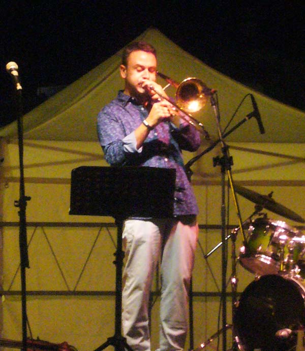 I concentrate on You (Cole Porter), Side by Side (Harry M. Woods), Blue Monk (Thelonius Monk), Theme from “Picnic” (Morris Stoloff), It’s All Right With Me (Cole Porter), Beautiful Love (Víctor Young, Wayne King and Egbert Van Alstyne ), Yes Sir, that’s my Baby (Gus Kahn-Walter Donaldson) i Georgia on my Mind (Hoagy Carmichael) són els temes que poguérem escoltar. I precisament quan en Miquel Gayà i enn Sergi Sellés atacaren el Beautiful Love, el trombonista va tenir nunes paraules de record per a Manuel Fernández, ànima del jazz en el moll des de la primera edició, i que en aquesta ocasió, lamentablement, no pogué fer acte de presència per motius de salut.