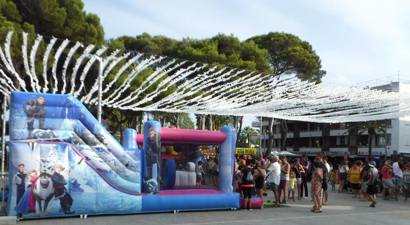 Dilluns, 12 d’agost, les festes de Sant Roc van omplir la plaça dels Pins de nins i nines per a participar en els tallers, el parc temàtic amb animació. Seguint la fórmula d’altres anys, a la plaça hi havia diversos jocs infantils, com ara boti-botis de pirates i Frozen, bou mecànic, combat … . tallers de dibuix, màscares i bosses de paper decorades i animació infantil.