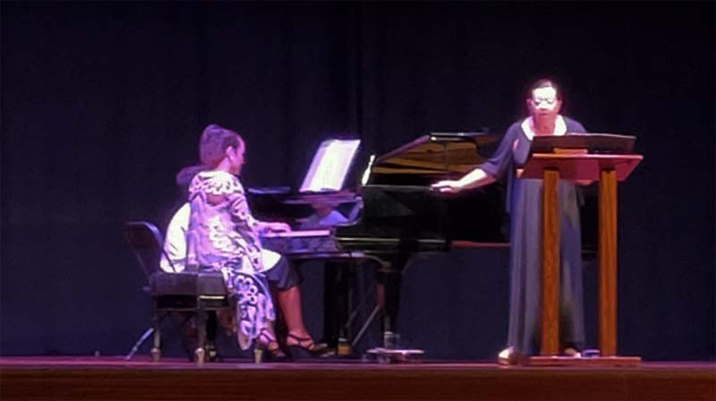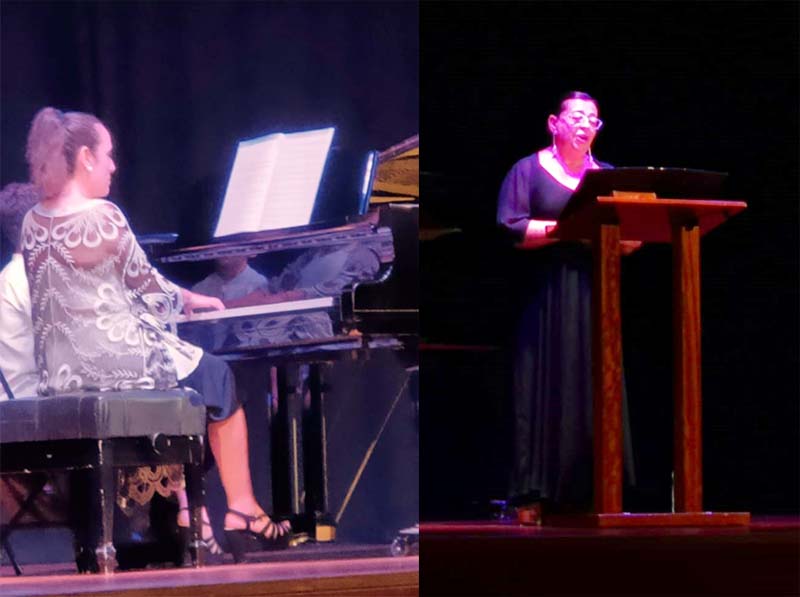 El concert constà de sis blocs: el primer, clàssic, que es completà amb les peces «Lascia ch’io pianga» de Händel, «L’amour est un oisean rebelle» de Bizet i també una seguidilla de Carmen, del mateix autor. Seguidament, el duet interpretà una sèrie de cançons de bressol: «Nana de Sevilla» amb música i lletra de Federico García Lorca; la cançó de bressol mallorquina «Vou veri vou» i «Canción de cuna para dormir a un negrito» de Cinco canciones negras de Xavier Montsalvatge. Després tocà el torn d’una cançó coneguda amb el títol d’Alfonsina y el mar, que agradà molt als espectadors. Era una peça d’Ariel Ramírez, que musicava un poema de Félix Luna. Tot seguit, arribà el torn de la part més divertida del concert, el de les bandes sonores, que encetà amb la peça Furyo de «Merry Christmas, Mr. Lawrence» de Ryuichi Sakamoto, basada en un film de Nagisa Oshima, aquí la pianista mostrà tot el seu virtuosisme i passió davant d’un piano que omplia la sala amb el seu so; després arribà el moment més lleuger del concert amb la interpretació de «La vita est bella» de Nicola Piovani, de la famosa pel·lícula de Roberto Benigni, també sonà «Se» de Cinema Paradiso, amb música original del recentment desaparegut Ennio Morricone, en el famós llargmetratge de Giuseppe Tornatore.