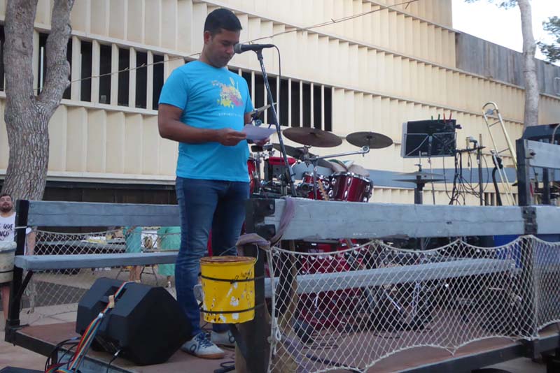 Arribats a la plaça del Centre Cap Vermell el pregoner va pujar al remolc del tractor d’Els qui ningú vol, per fer el seu curt i emotiu pregó, mostrant la seva visió del poble i la seva experiència personal en els dotze anys que conviu amb nosaltres (El podeu escoltar íntegrament a un altra notícia).