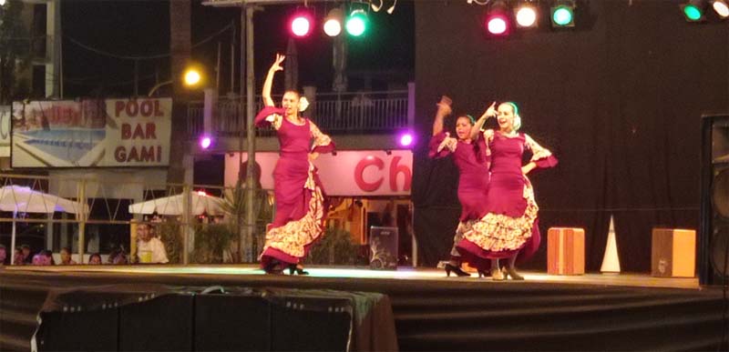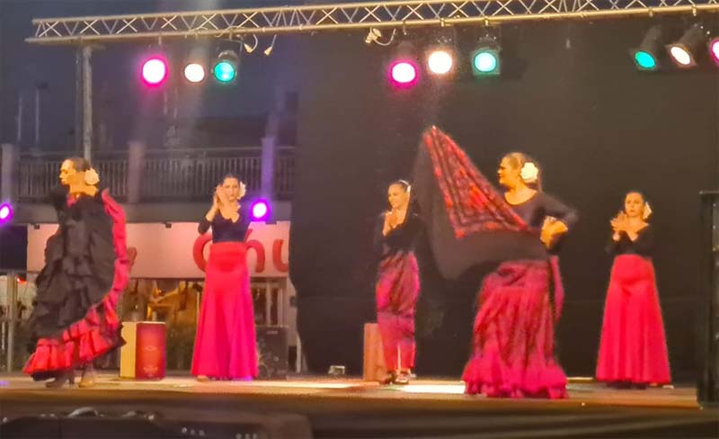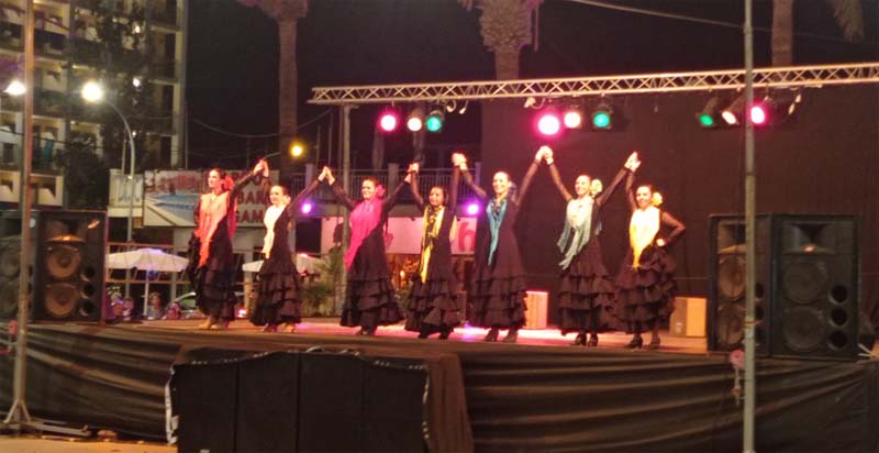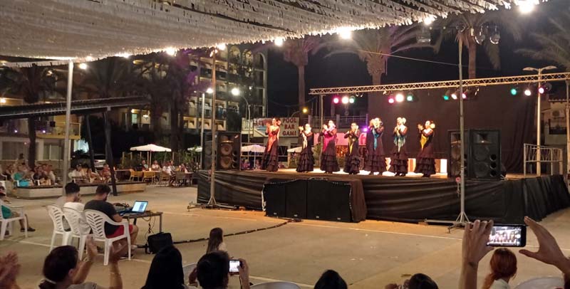 Al vespre l’escenari de la plaça dels pins se va omplir amb els sons i els balls andalusos de la mà d’Alma del Sur, que oferiren un vistós espectacle. Així com avançava l’actuació, la plaça se va anar omplint, amb molta presència de turistes.