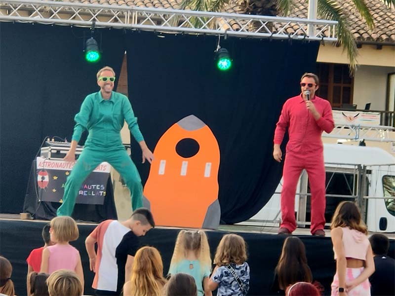 Seguint amb el programa de festes de Sant Roc, dijous 10 d’agost, a les 19 hores va tenir lloc l’actuació d’Astronautes Estrellats, un grup d’animació infantil de Joan Miquel Riera i Joan Alzina. Durant la seva actuació intenten que gaudeixin els petits (i no tan petits) rient i ballant. A la seva actuació a la plaça dels Pins hi hagué una discreta afluència de públic infantil. Aquest espectacle forma part de l’oferta cultural del CACIM (Consell de Mallorca).