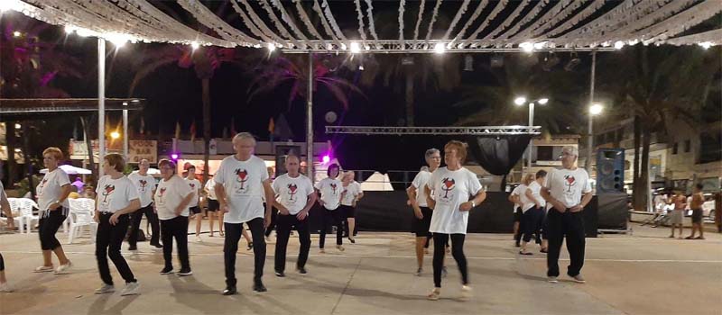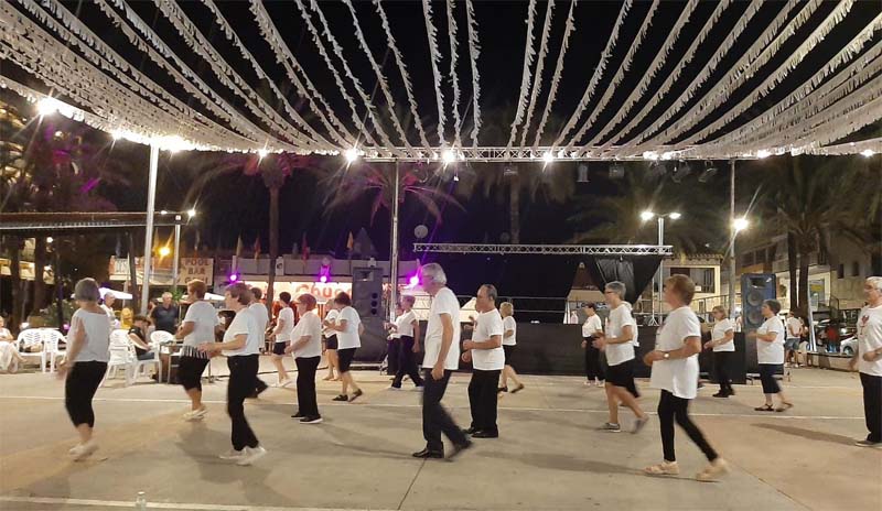 D’altra banda, ja fosca, els protagonistes van ser els socis del Club “Sol naixent” que van executar una sèrie de balls en línia en la plaça dels Pins. Coreografies ben sincronitzades i alegres!