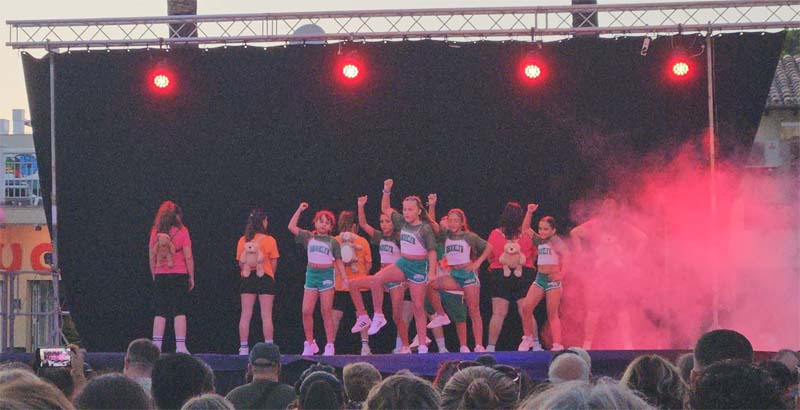 En la mateixa jornada festiva, al capvespre, les alumnes de Total Dance van oferir un festival a la plaça dels Pins. Els distints grups d’alumnes van sortir a l’escenari i van executar les coreografies que havien preparat.