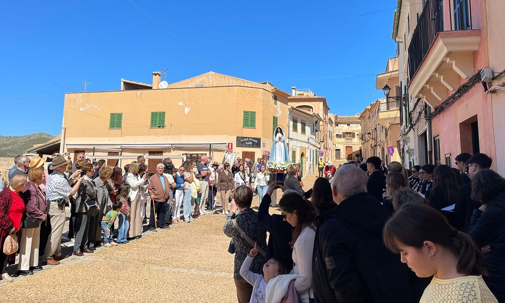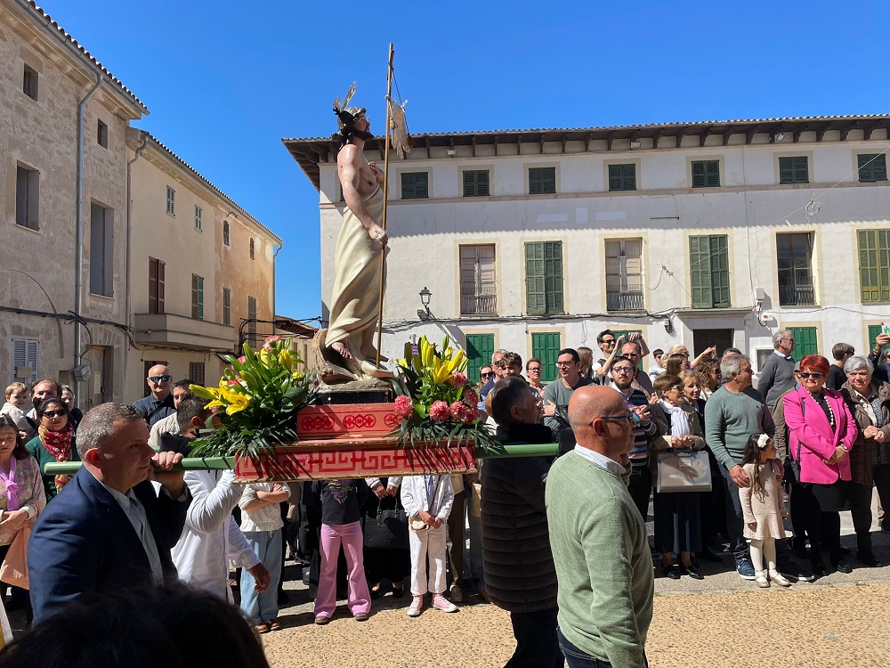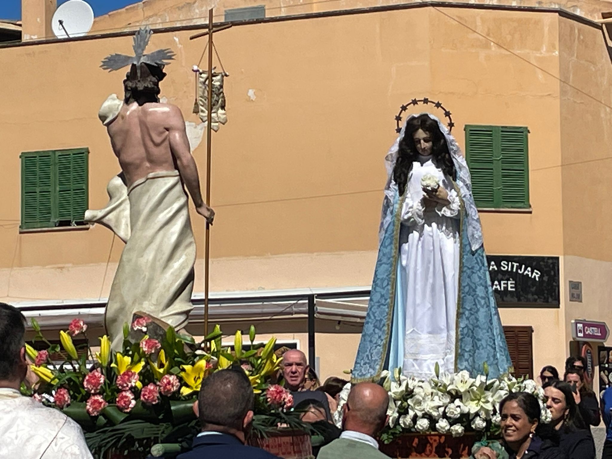 Un bon Diumenge de Pasqua, dia primaveral assolellat per participar de la Processó de l’Encontre, del Crist Ressuscitat i la Verge Maria. Així ho va entendre la gent, que en un gran nombre va assistir a aquesta tradicional celebració del Diumenge de Pasqua, tant a Cala Rajada a les 10 h com a les 12 h a Capdepera.