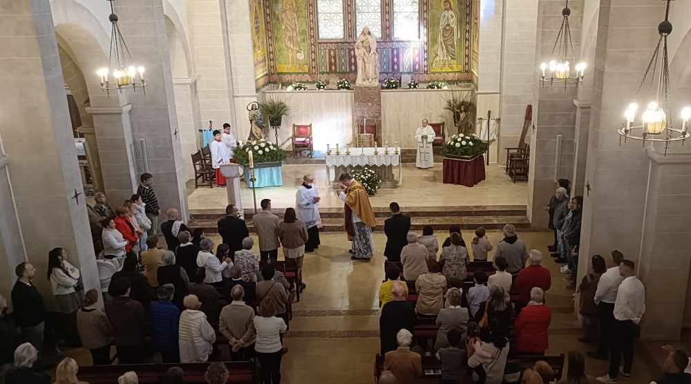 A continuació la litúrgia baptismal, on es beneeix l’aigua de la pila baptismal, aigua que servirà per als batejos de tot l’any, després s’aspergeix a tots els fidels amb l’aigua beneïda.