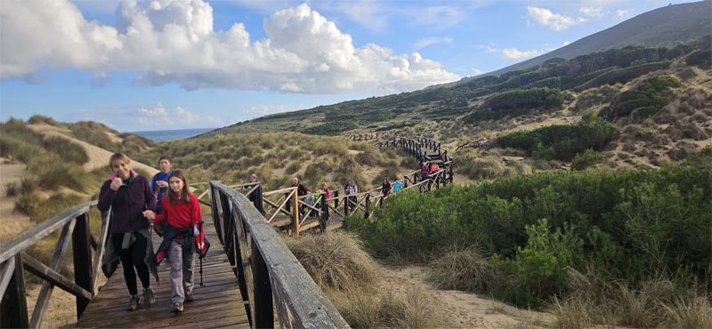 Travessarem les dunes per la passarel·la, ja adobada i transitable, i al passeig vam fer altra aturada que alguns aprofitaren per berenar.