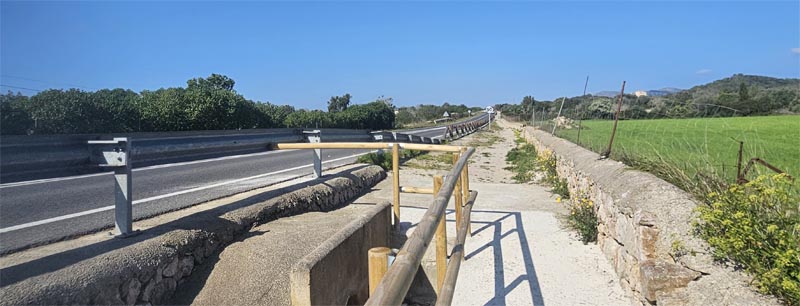 Des del molí giràrem a l’esquerra (a la dreta es troba la carretera Capdepera-Artà) i travessàrem el torrent de na Maians i seguírem el camí de na Maians una bona estona fins a arribar a la carretera Ma-4042, a l’altura del pont del torrent de Canyamel.