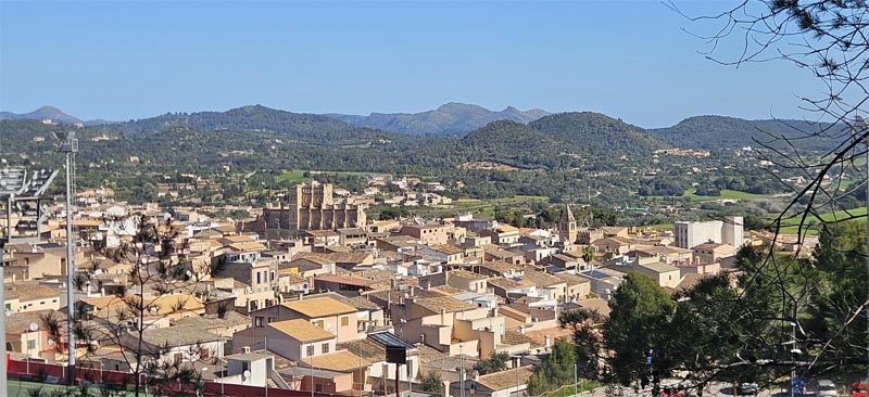 Tornats a can Baterman tots plegats vam berenar i després realitzàrem el camí de Colombàs. El camí rectilini mostra una bona panoràmica del vessant sud de la Serra de Tramuntana, amb el puig de Sant Miquel i la central tèrmica del Murterar.