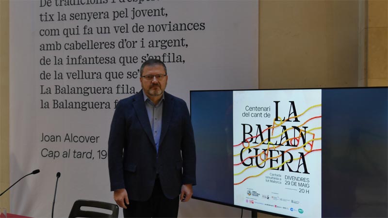El divendres, 29 de maig, a les 20 h, a tots els pobles i ciutats de Mallorca ressonarà La Balanguera, himne de Mallorca, en una gran cantada col·lectiva convocada per l’Obra Cultural Balear (OCB). Es tracta d’una acció que s’emmarca en la celebració de l’Any Joan Alcover, en commemoració del centenari de la mort del poeta, i del centenari, també, de l’estrena musicada de La Balanguera per part d’Amadeu Vives, interpretada per primera vegada el 29 de maig de 1926 al Palau de la Música de Barcelona.