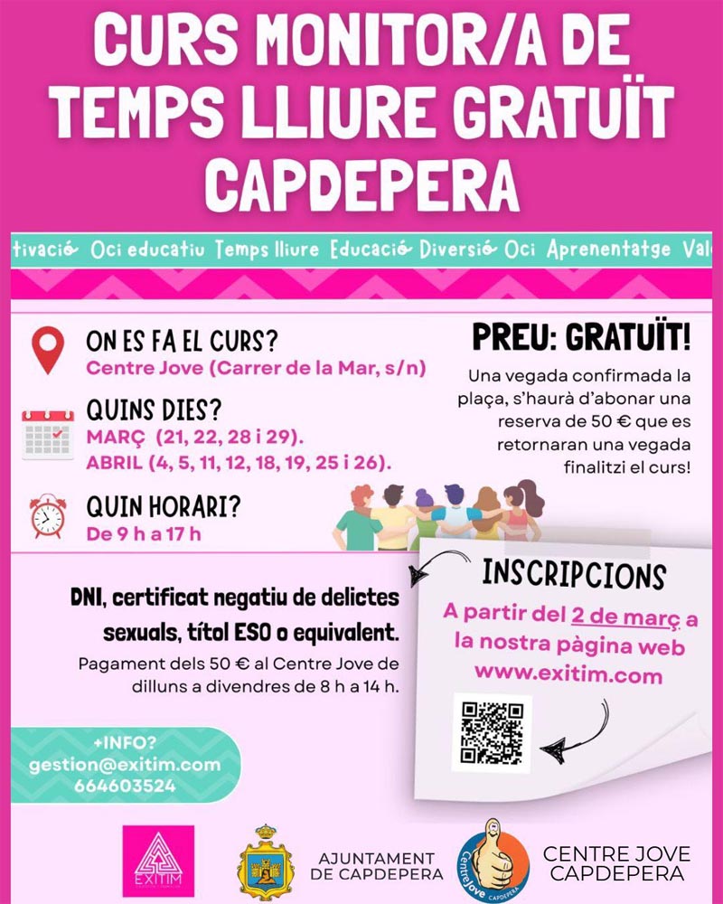 CURS MONITOR/A DE TEMPS LLIURE GRATUÏT A CAPDEPERA