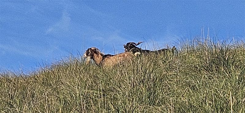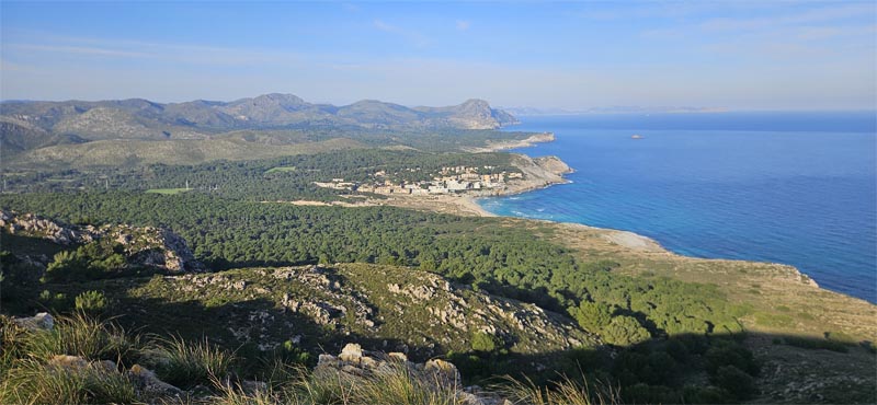 Arribats al collet on s’acaba el bosc les vistes de Cala Rajada i la punta del far són impressionants. Entre les carritxeres dos bocs observaven la nostra pujada, ara més suau.
