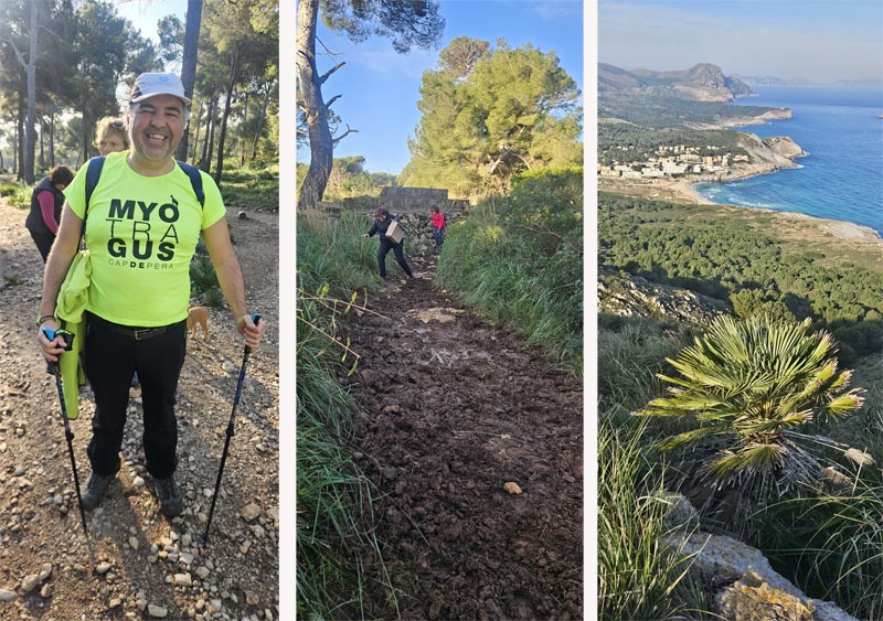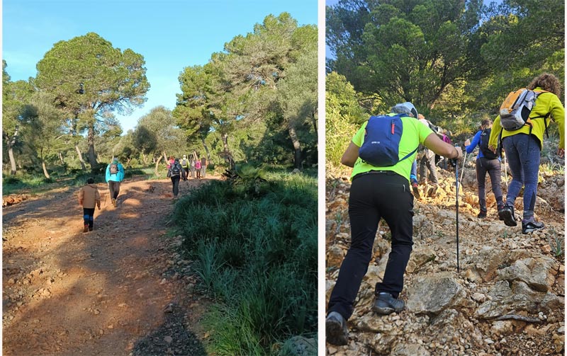 Així els participants (onze als que s’afegiren tres més durant la ruta) iniciàrem la caminada des de les cases de Cala Moltó, pel bosc de l’Agulla. En les zones planes trobàrem molt de bassiots i fang, fins a arribar al camí principal del Coll de Marina.