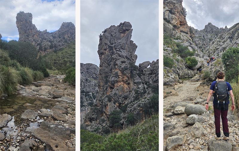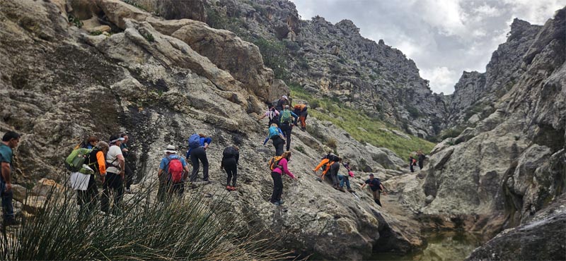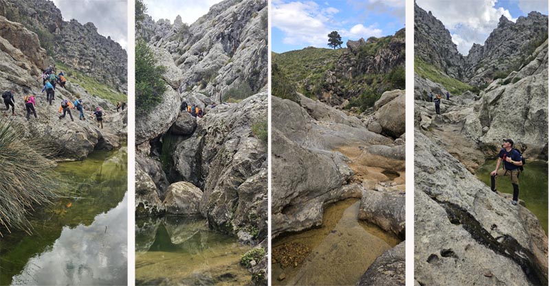 Havíem quedat amb els companys al torrent de Mortitx, que vam emprar per tornar. Els trobàrem just quan travessaven la vorera del Gorg Llarg. Segírem pujant pel llit del torrent.