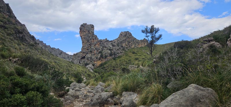En un entreforc on hi ha un cartell indicatiu havíem de girar a l’esquerra. El cartell estava romput i alguns companys que anaven endavant s’erraren i seguiren pel torrent del Hort des Molí. Vam aturar una estona i anàrem a cercar-los.