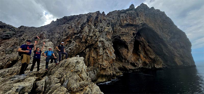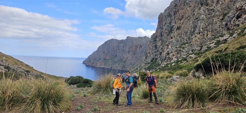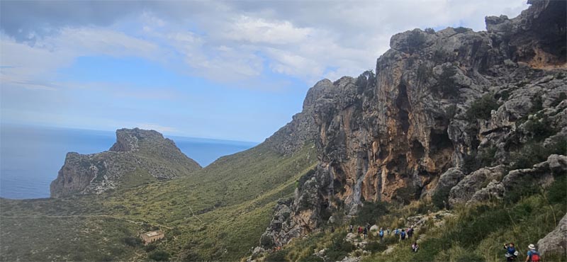 Iniciàrem la baixada per les Voltes de l’Ullastre amb els impressionants penya-segats a la nostra dreta. La baixada és ràpida. Alguns aprofitàrem per a fer unes fotografies amb el fons d’una de les zones més boniques de la costa de la Serra de Tramuntana.