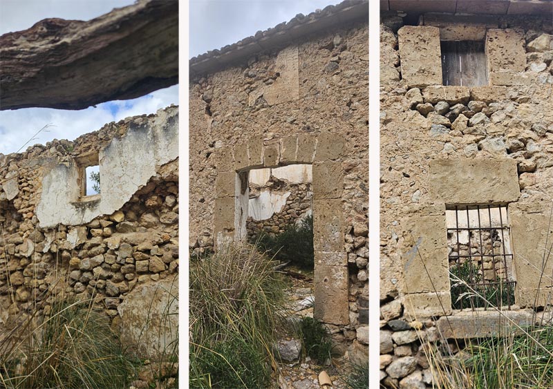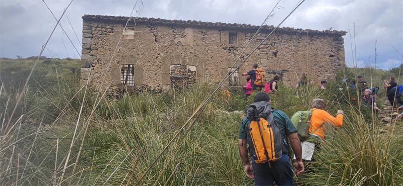 Les cases del Rafal d’Ariant es troben en un estat ruïnós. Aturàrem cinc minuts, escoltant algunes explicacions de les rutes que seguien els habitants d’aquest indret per comunicar-se amb Pollença.