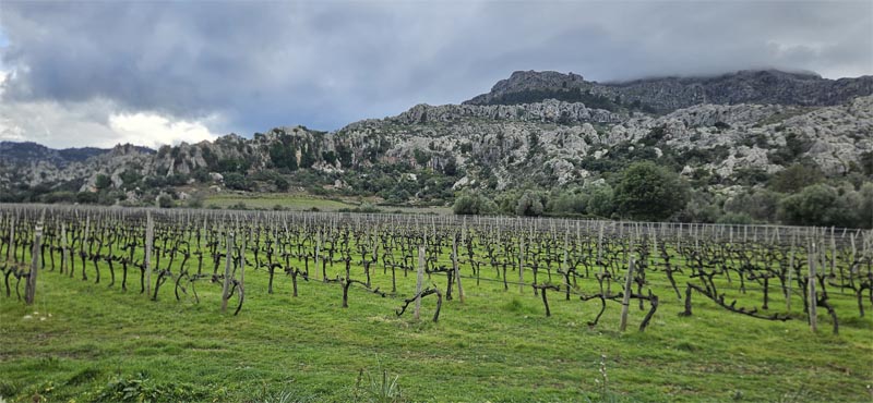 L’autobús ens deixà a l’entrada de la finca de Mortitx, ara dedicada a la producció de vins. Després d’un breu tram l’ample camí es bifurca i nosaltres girem cap a la dreta travessant una primera barrera per una escala lateral. Poc després giràrem a l’esquerra (deixant el camí principal) endinsant-nos en un alzinar. Per continuar pel caminoi tornem a passar un botador.