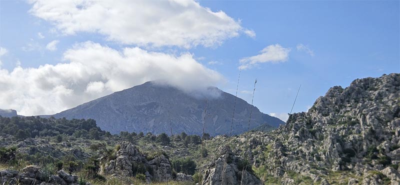 Puntualment ens esperava l’autocar per dur-nos de tornada a casa. Baixant cap a Pollença vam poder gaudir de les belles vistes de la vall d’En Marc i la Cuculla de Fartàritx, mentre el Puig Tomir jugava a amagar-se entre boires.