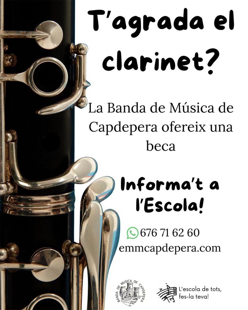 El Centre Cultural Banda de Música de Capdepera ha posat en marxa una nova ajuda econòmica per fomentar l’estudi del clarinet entre els infants del municipi durant el curs acadèmic 2025-2026, en col·laboració amb l’Escola Municipal de Música de Capdepera.