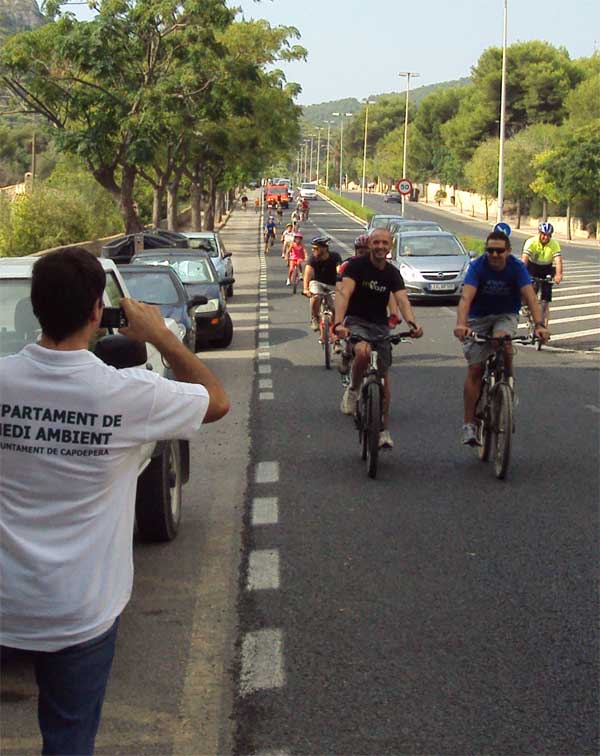 Modesta participació en aquesta bicicletada que pensam que si s’hagués convocat una setmana després, com a colofó de la setmana de la mobilitat, hauria estat més fàcil implicar la població escolar.