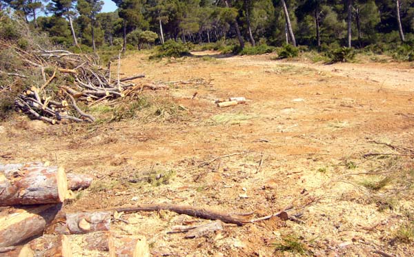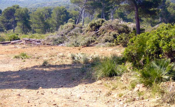 Grans redols absolutament devastats i la presència de maquinària pesant per a la tala de pinar s’erigeixen com a testimonis d’una actuació que, per més que compti amb l’aquiescència de la Conselleria, a primera vista resulta més aviat preocupant. I és que una cosa és prevenir i l’altra deixar una petjada com la d’Othar, un dels cavalls més famosos de la Història.