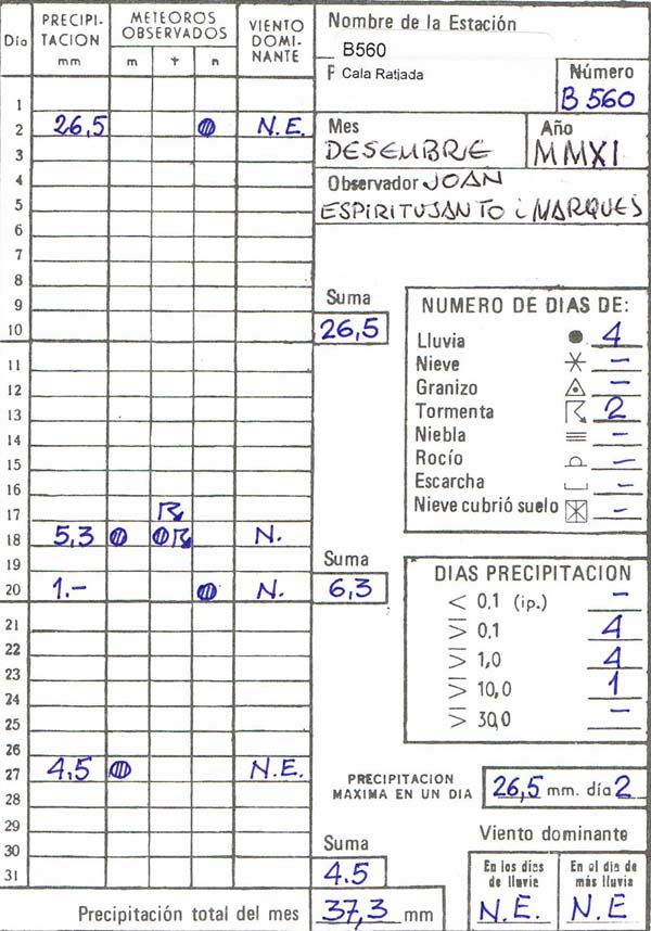 Els vents de Tramuntana i Gregal, eren els qui ens portaren les pluges durant aquest mes.