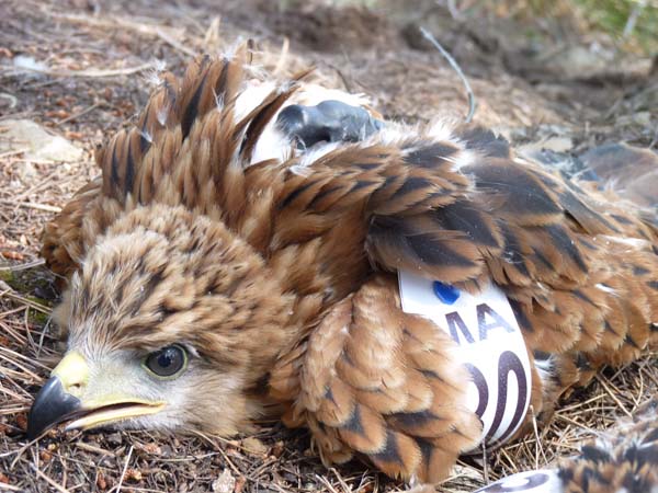 Fotografies (Álvaro Román): marcatge d’una milana amb marques alars i emissor de ràdio