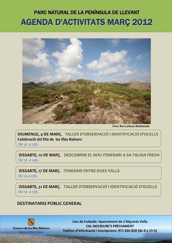 El Parc natural de Llevant ha organitzat per a aquest mes de març les següents activitats obertes a tots els públics: