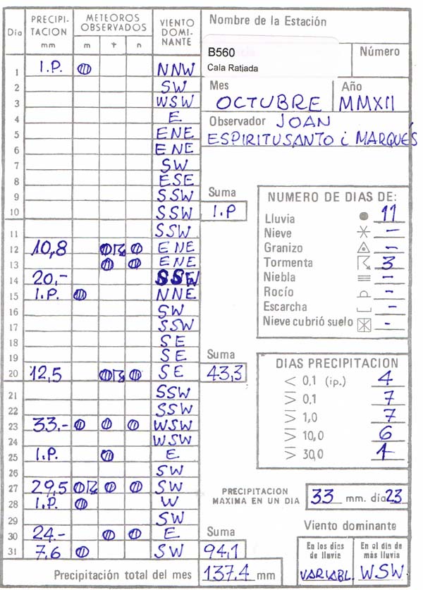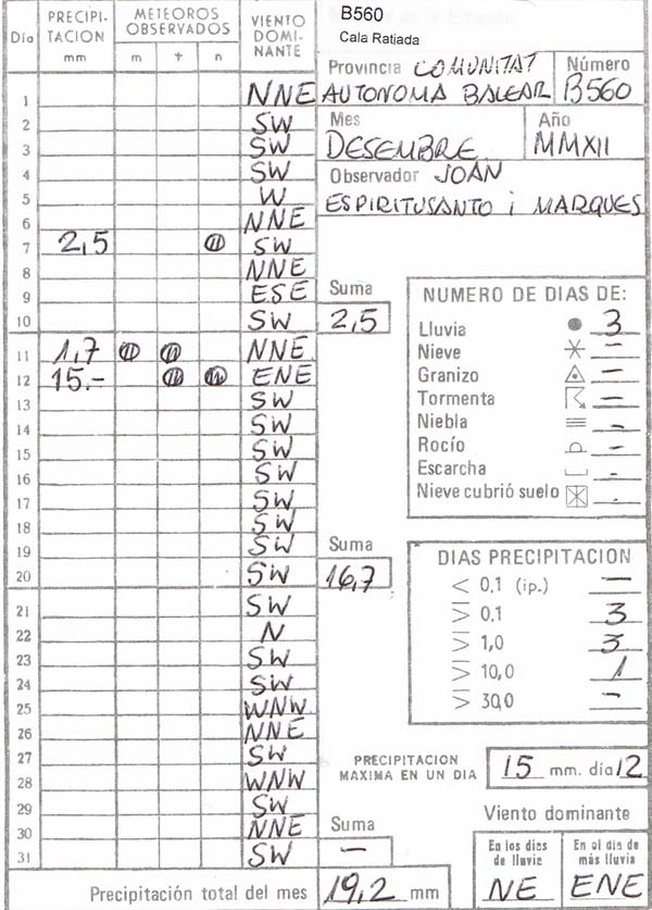 FULLS DE DADES CLIMATOLÒGIQUES D¡OCTUBRE, NOVEMBRE I DESEMBRE 2012 Altres articles Nou rescat a la Talaia de Son Jaumell 28 de març de 2026 Agenda de la Vila. Mes de febrer de 2026 23 de març de 2026 Activitats de final de trimestre de l’Escola de Música de Capdepera 1 d'abril de 2026 Bona actuació de les germanes Lorenzo al campionat d’Espanya sub 20 24 de març de 2026 Vent i més vent 3 d'abril de 2026 Gran èxit al primer Torneig de Pàdel del Centre Jove de Capdepera. 23 de març de 2026