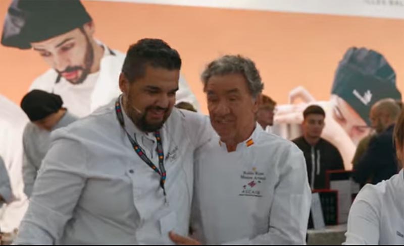 En Metus va participar amb una exhibició, elaborant un plat molt “especial” que no deixà a ningú indiferent. Va cuinar unes supremes d’ocell farcides d’espinacs saltejats i dàtils, cuinats a baixa temperauta i glacejat amb demiglace d‘hidromel, acompanyat de puré sedós de tubercles i acabat amb escuma d’hidromel.